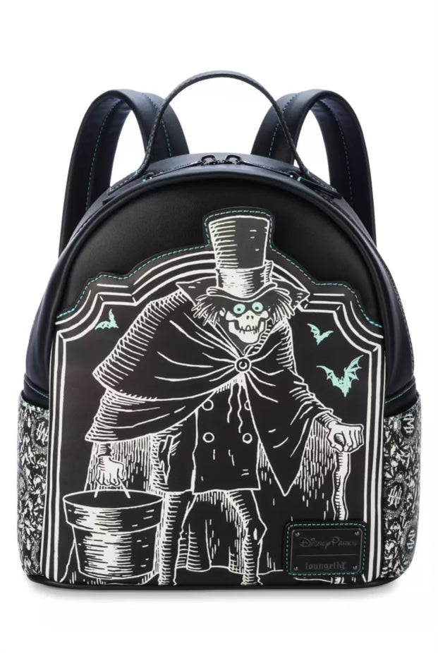 - Side slip pockets with allover bats and Haunted Mansion initials logo